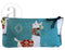 An assorted collection of four (of the six pictured) Petit Pouches. Combining fabrics, our Petit Pouches have a zipper opening along the top and a second, diagonal, zipper across the front creating an additional pocket.