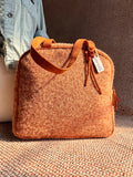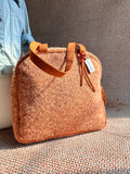 The Atenti Bonnie Teddy - crafted in a warm cinnamon-toned texture reminiscent of coarse mohair, but fully synthetic. Soft, cozy, and quietly textured, Teddy balances a modern minimal look with a timeless vintage feel—an easy, versatile fabric that works across seasons and styles. This TWA-inspired carryall is constructed just like our Overnighter, boasting double straps, 4 metal feet, a 24" zipper top opening and a water-resistant lining. Inside, you'll find a zippered pouch plus a divided pocket complete with cell phone storage! Spacious, functional, and built for everyday use, craft projects, weekend travel, and shop-ready display. Dependable for both buyers and customers.