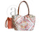 The Atenti Eagle Lolita - A Southwest inspired jacquard. The Lolita is an open tote with a magnetic closure and a large detachable interior pouch 12" x 10" x 3" in a matching fabric. Both pieces are fully lined with water resistant taffeta. The outside shell bag includes a zippered pocket and an open divided pocket with a cell phone slot. The Lolita has about a 10.5" drop (the distance from the top of the strap to the top of the bag's body).