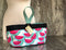 A faux shearling fabric. This stand-alone, carry around organizer is perfect to store and keep handy all your tools and notions. It’s fully lined and has four outside and four inside pockets with an ample center well and anultra suede handle.