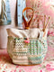 Stow your gear in swaggering Southwest style with the Atenti Maverick Tall Caddy. Its bold geometric design and array of vivacious colors make it your ultimate companion in life's adventures! This taller version of our best selling Caddy is a stand-alone, carry around organizer and is perfect to store and keep all your tools and notions handy. It’s fully lined and has four outside and four inside pockets with an ample center well. Thread the ultra suede handle through the closure loop to secure and as a carrying option.