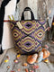 A striking multicultural folk pattern in vibrant colors. The Naya Hope Basket is a roomy stand-alone project bag. Top rolls down for easy access. Wide opening and two handles. Fully lined in our tan, water repellent taffeta. There are three pockets inside.