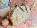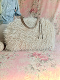 A luxurious shaggy faux fur. Pack your essentials and more in this luxurious weekender! Sized to hold all you need for an overnight getaway, this large bag is perfect for when you want to enjoy the finer things in life. In addition, our Overnighter is perfect for a variety of uses: a knitter's project bag, an aircraft carry-on, or a baby diaper bag. Designed for function and style, this Weekender features two sturdy shoulder straps, a full 28” zipper closure, and protective feet. Inside, you’ll find a fully lined interior in tan water-repellent taffeta, plus a zippered pocket and divided open pocket with a slot for your cell phone. Tassel included!
