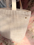 Indulge in timeless elegance with the Rosewood, a stunning vintage-style floral print showcasing a beautiful assortment of delicate roses and botanical motifs in warm tones of blush pink, dusty rose, and soft beige. Paired with a classic stripe canvas, this is the ultimate cottagecore or shabby-chic tote.