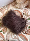 A chocolate shaggy faux fur. Opening with a 12" rectangular snap frame, the Atenti Molly carpet bag shows off a fully lined water resistant taffeta interior. Inside are a zippered pocket and an open divided pocket with a cell phone slot. The Molly has double 22” straps with a 11’ drop and metal feet.