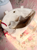 Detachable Zipper Pouch: A coordinating pouch (7.5"x4"), perfect for small notions, is attached inside with a lobster clamp. This clamp can also be used to hang your keys or other small accessories.