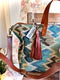 Be awestruck by the beauty of the Twinkle Caddy. Its embroidered tapestry-like background of autumnal leaves on a dark backdrop is matched with a twinkling interior fabric, bringing understated elegance and a surprising pop! Perfect for adding a touch of luxury and sophistication to your wardrobe. This stand-alone, carry around organizer is perfect to store and keep handy all your tools and notions. It’s fully lined and has four outside and four inside pockets with an ample center well and an ultra suede handle.