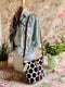 The Atenti Halle Bucket Bag has two interior pockets, leather detachable adjustable crossbody strap, and a leather closure. This design features cozy faux shearling delightfully decorated with warm leather.
