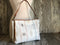 A coarse woven jacquard of earth tones in a Native American inspired design is trimmed with an ultrasuede lanyard finished with beads and studs. This rectangular cross-tote features a full zipper opening. Measuring 12" x 12" it is fully lined in water resistant taffeta with a zippered pocket and a divided pocket with a cell phone slot.