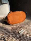 The Terra Caddy is your charming go-to for storing knitting tools, crochet hooks, sewing notions, or even home essentials.  This elegant storage basket features a mint green/aqua base fabric richly embellished with Suzani-style floral embroidery. The intricate, oversized blossoms in shades of terracotta, coral, and deep rose, accented by brown, create a vibrant texture. It is perfectly complemented by a faux-suede brown handleIt and trim adding a luxurious touch for a stylish way to hold yarn, crafting supplies, or small household items. This structured yet flexible organizer is as beautiful as it is functional.