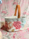 Indulge in timeless elegance with the Rosewood, a stunning vintage-style floral print showcasing a beautiful assortment of delicate roses and botanical motifs in warm tones of blush pink, dusty rose, and soft beige. Paired with a classic stripe canvas, this is the ultimate cottagecore or shabby-chic tote.