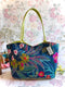 A robust texture cotton linen blend printed with a bold floral watercolor design. Opening with a 16" rectangular snap frame, the Atenti Pioneer carpet bag shows off a fully lined water resistant taffeta interior. Inside are a zippered pocket and an open divided pocket with a cell phone slot. The Pioneer has double 21” straps with a 10’ drop and metal feet.