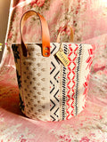 Elevate your home organization with the Snowflake Tall Tucker. Cross stitch style snowflakes and geometric motifs in red, black, white and olive over a full-bodied, natural beige colored jacquard is both functional and fashionable with leather straps. Its sturdy construction ensures...